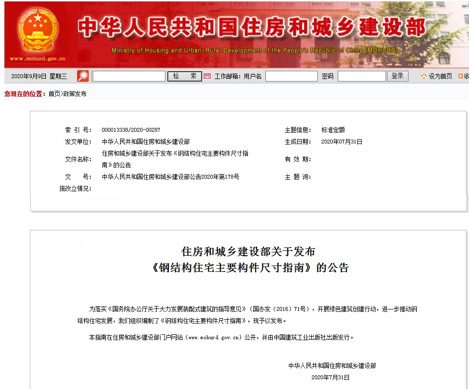 為落實(shí)《國(guó)務(wù)院辦公廳關(guān)于大力發(fā)展裝配式建筑的指導(dǎo)意見》、開展綠色建筑創(chuàng)建行動(dòng)、進(jìn)一步推動(dòng)鋼結(jié)構(gòu)住宅發(fā)展,住房和城鄉(xiāng)建設(shè)部組織編制了《鋼結(jié)構(gòu)住宅主要構(gòu)件尺寸指南》,并于日前印發(fā)。